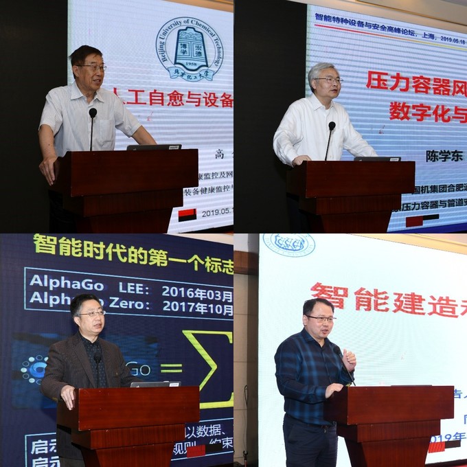 在成立仪式后,人工智能领域的专家学者汇聚一堂,就智能特种装备与安全开展高峰论坛。高金吉、陈学东、杨小康和何斌分别作了题为“人工自愈与设备自愈调控系统”、“压力容器风险评估技术数字化与远程思维”、“智能机器视觉”和“智能建造与建筑机器人”的专题报告,四场专题报告引起了现场来宾和专家学者的热烈反响,大家围绕人工智能前沿科学与工程问题展开了广泛而深入的探讨。