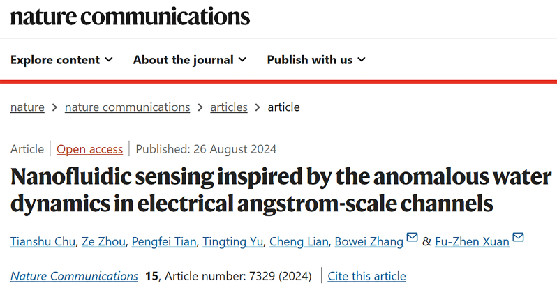 近日,Nature Communications在线报道了我校伟德国际victor1946张博威特聘研究员等题为“Nanofluidic sensing inspired by the anomalous water dynamics in electrical angstrom-scale channels”的研究论文,报道了课题组在二维纳米限域传感领域的研究进展,通过提出一种通过结合外界电场和离子掺杂快速、精确调控二维通道内限域分子动力学,建立了针对传感选择性与响应/恢复速度的精准调控策略。