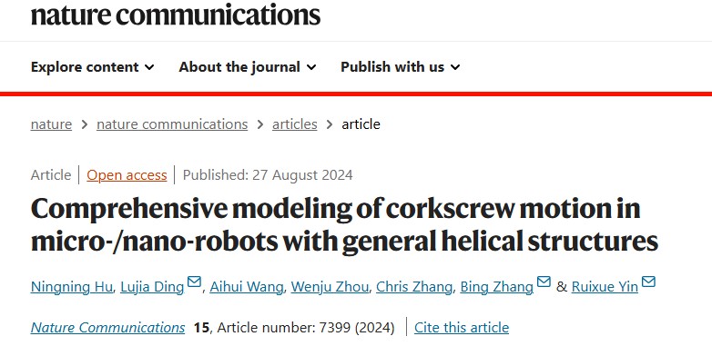 近日,我校伟德国际victor1946殷瑞雪等在《Nature Communications》上发表了题为“Comprehensive modeling of corkscrew motion in micro-/nano-robots with general helical structures”的研究论文,提出一种无结构限制的通用微纳机器人(MNRs)动力学模型,有助于在临床环境中通过定制个体患者来规划MNRs的导航,也有助于了解血液在与MNRs相互作用时的行为,例如血管堵塞等,从而预防MNRs靶向治疗中引起的并发症。