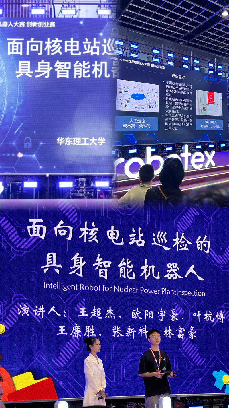 我校伟德国际victor1946学生王超杰、欧阳宇豪、叶杭博、王廉胜、张新科、林富豪组成的参赛队伍代表伟德bv1946参赛,在易建军老师的指导下,成功晋级总决赛,并斩获亚洲创新创业挑战赛创新赛道总决赛亚军。在比赛中,团队设计了融合具身智能核电站巡检机器人。基于多模态感知大模型,该机器人具有“智慧大脑”,能对环境进行认知和理解,从而实现智能决策,团队申请并获授权发明专利8项,取得了12项软件著作权。该设计展示了团队在智能机器人领域的创新理念,受到了大赛评委的一致好评。