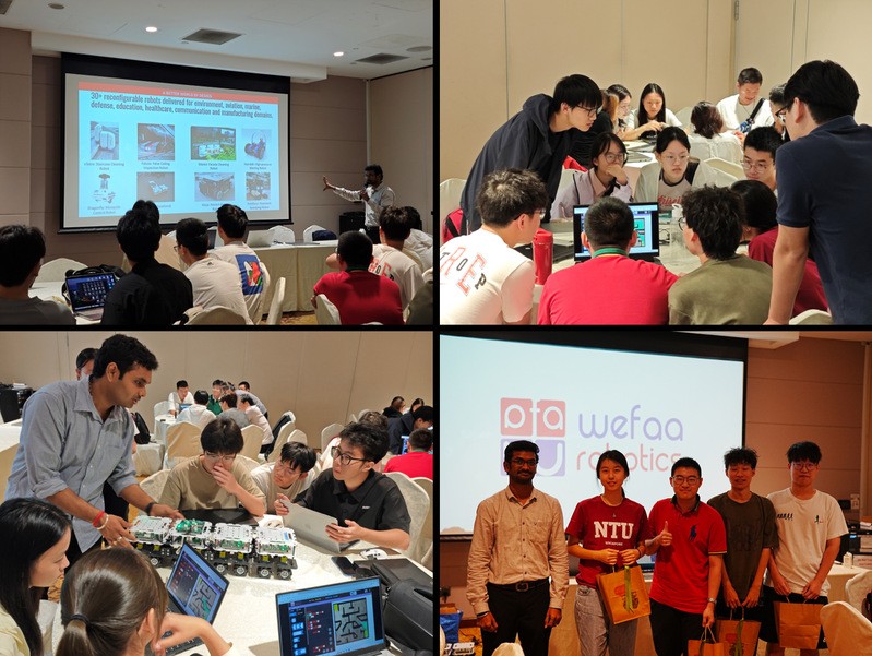7月24日上午,实践团赴新加坡科技设计大学参加AI在机器人设计中的应用专题讲座。Mohan教授聚焦可重构机器人,讲解其依托模块化硬件设计和先进分布式控制系统,所具备的高灵活性及在复杂环境中工作的优势。在实践操作环节,各组同学在wefaa robotics平台上编写指令并操控虚拟机器人,开展越障模拟竞速比赛,深化了对机器人领域前沿技术的理解。