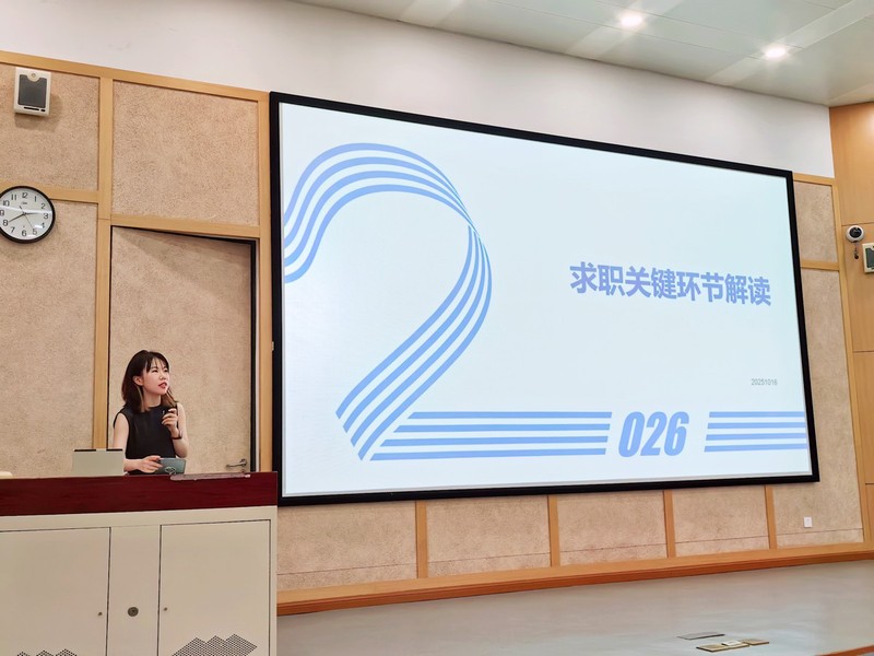 郑东结合学校毕业生就业工作实际,从毕业去向构成、行业分布以及重点单位构成等多个维度,对近年来的就业形势和节奏进行了介绍。他通过生动的实际案例,系统介绍了学校就业支持服务体系,为同学们的生涯规划提供了清晰指引。郑东勉励同学们,要尽早明确个人发展方向,以开阔的视野和积极的心态迎接职业选择和挑战,同时深入认识并发挥自身在就业市场中的独特优势,善用学校资源,更有信心地开启理想的职业生涯。