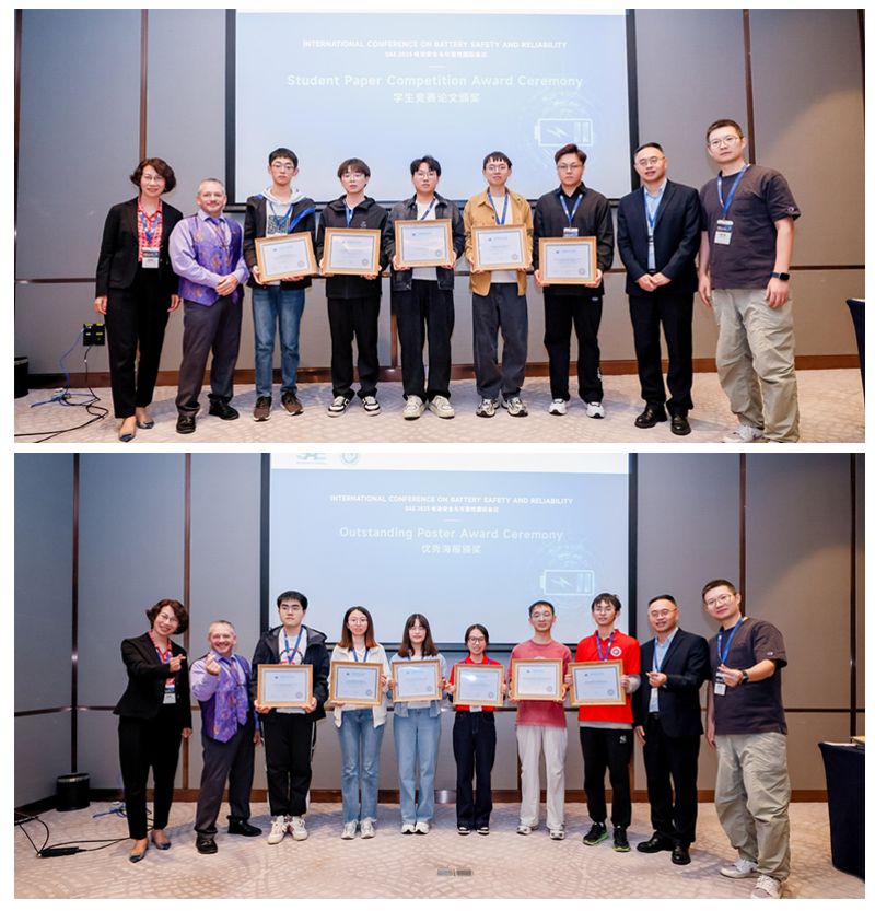 大会共设置5个专题分会场,近百位专家与青年学者作主旨或学术报告,方向涵盖电池安全管理、风险评估、材料与结构创新、热失控防控、寿命预测与可靠性建模等。大会同期还举办了优秀学生论文竞赛和论文海报评选活动,大会联合执行主席——SAE电池标准委员会主席Brian Engle、伟德bv1946陈浩峰教授,同济大学韩广帅副教授担任评审专家。来自伟德bv1946、重庆大学、西安交通大学、上海交通大学、北京理工大学等高校的14位研究生获奖,充分展现了青年学者的科研潜力与创新活力。