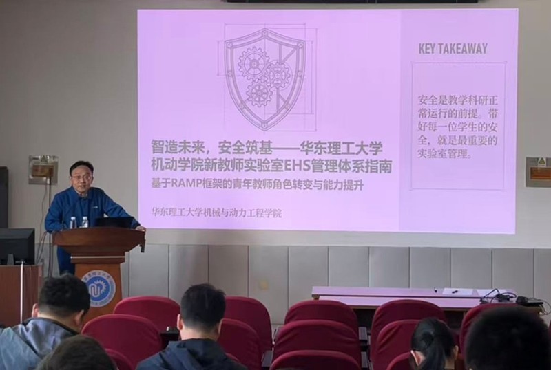 培训紧扣实验室安全管理实际,围绕五大核心内容展开系统讲解。一是角色转变,引导新教师从科研人员向安全第一责任人转变,明确岗位安全职责;二是风险洞察,结合机动学院学科特点,全面梳理实验室安全风险类型与防控重点;三是核心工具,详细讲解RAMP框架在科研全生命周期的应用方法;四是管理赋能,指导教师构建课题组层级化、常态化的“安全防护网”;五是应急响应,普及事故应急处置流程与上海市应急就医指南,提升突发情况应对能力。