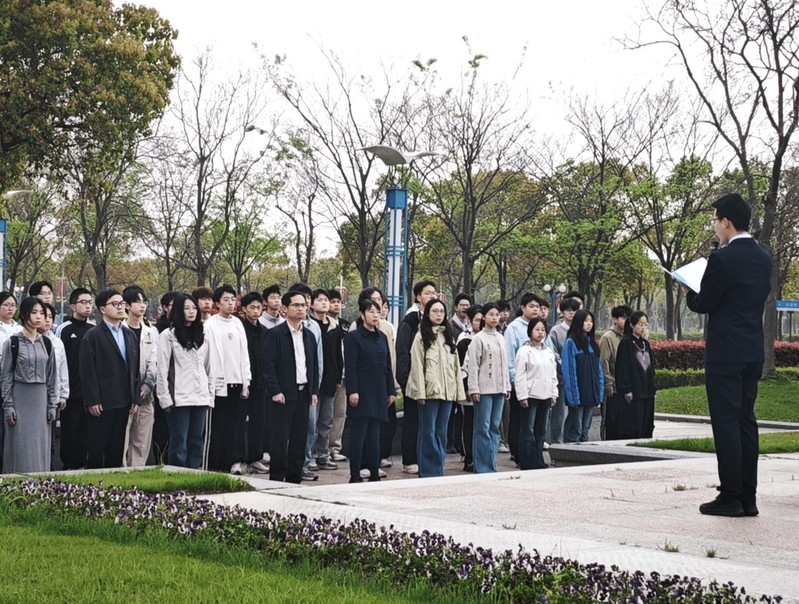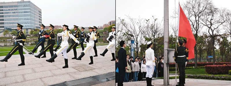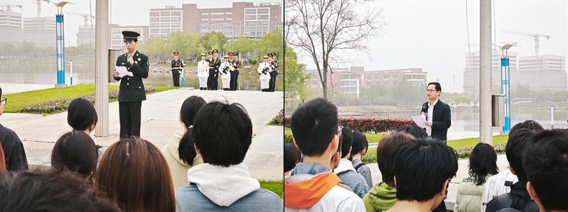 4月15日清晨,党委学生工作部(处)联合伟德国际victor1946在奉贤校区亲水平台广场举行“统筹发展和安全 护航‘十五五’新征程”——“4·15”全民国家安全教育日主题升旗仪式。党委学生工作部(处)副部长饶志雄,伟德国际victor1946党委副书记耿春姝,数学学院党委副书记王帅,国旗护卫队、学院入党积极分子出席仪式。